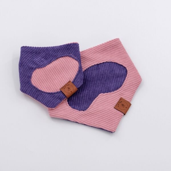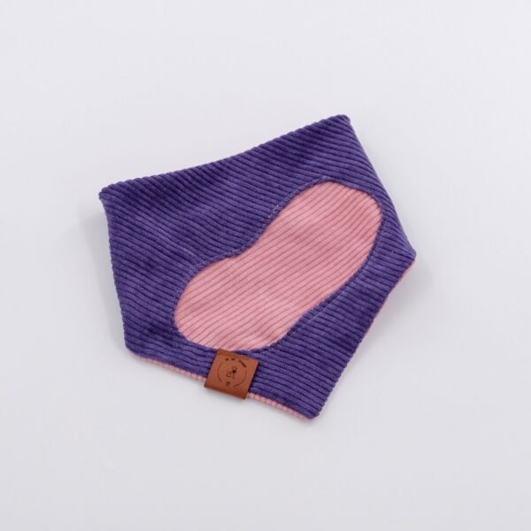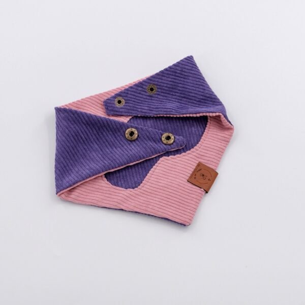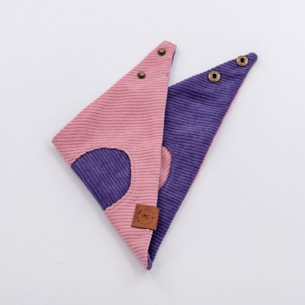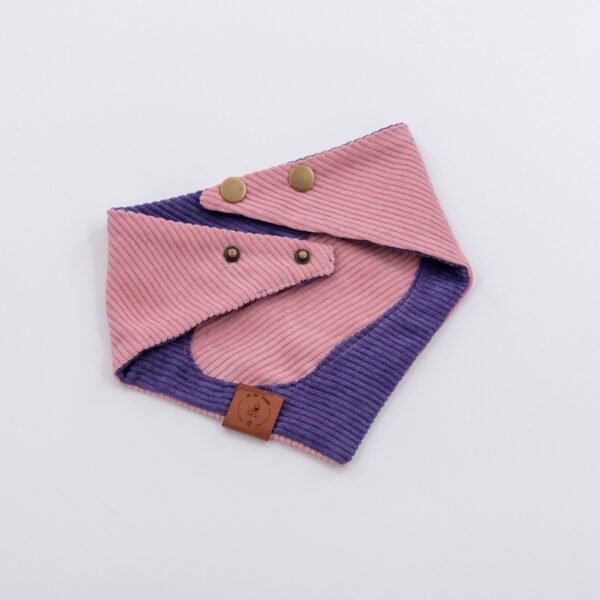 A corduroy bandana for your furry friend with two snaps that is reversible is a versatile and functional accessory.