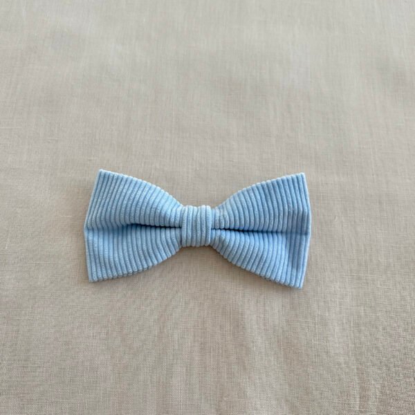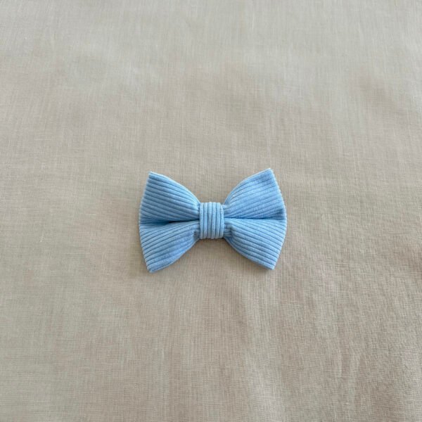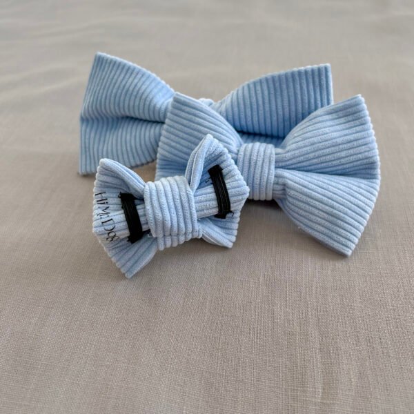 Enhance your furry friend’s wardrobe with our classic baby blue corduroy bow tie.