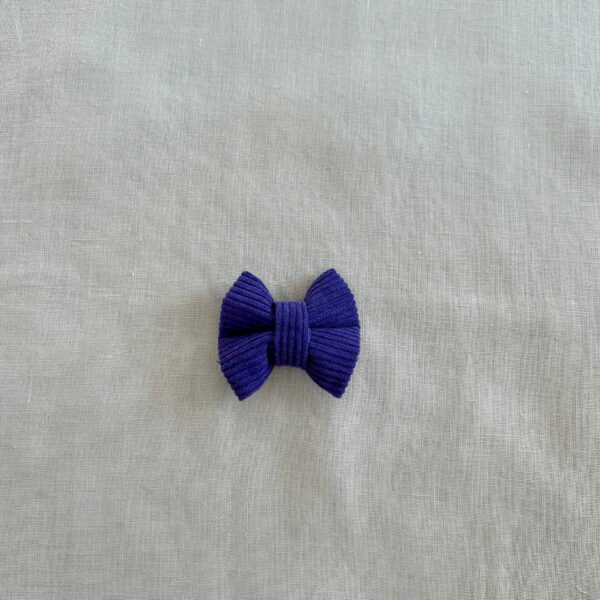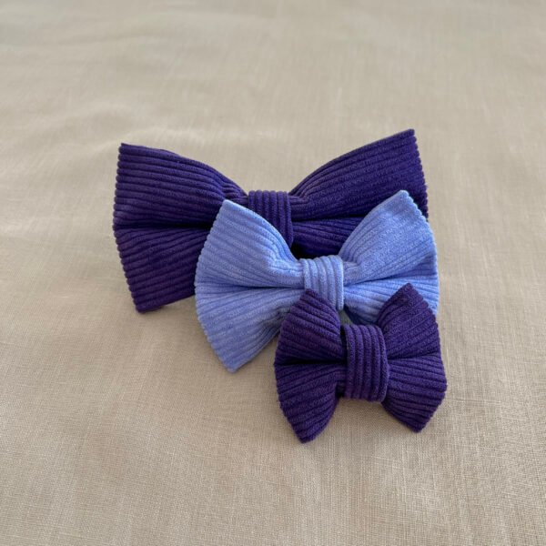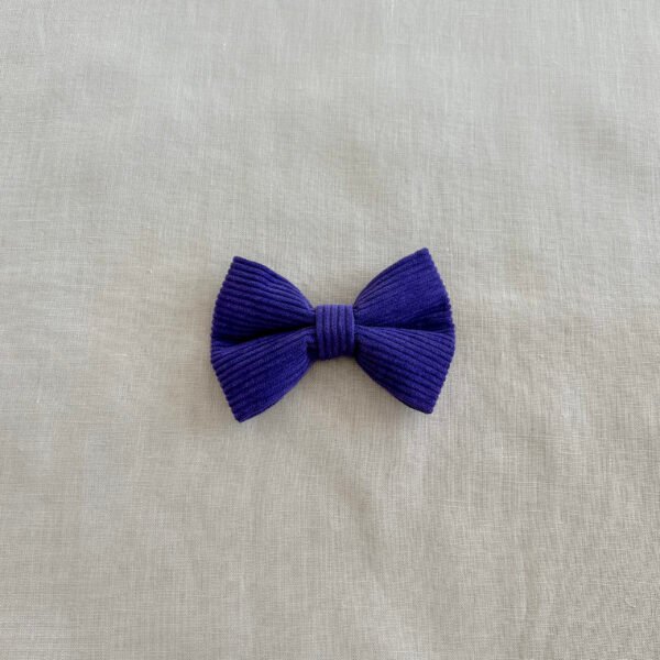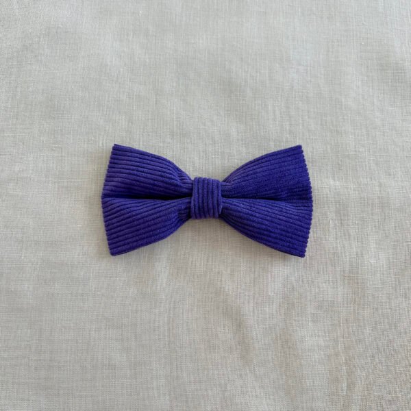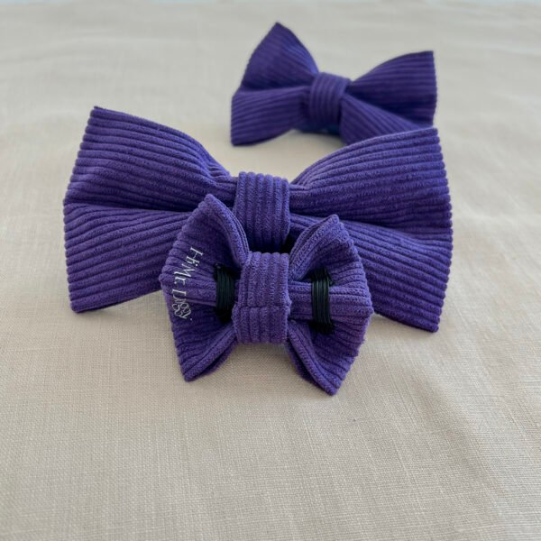 Enhance your furry friend’s wardrobe with our classic purple corduroy bow tie.