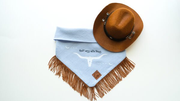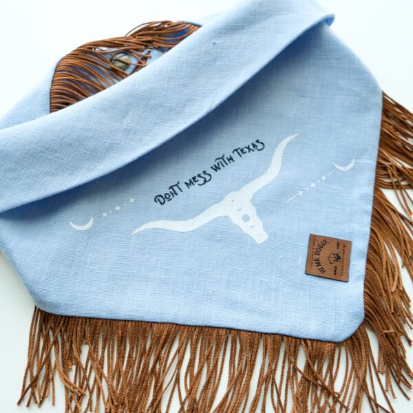 Dog Bandana – Blue | Don’t Mess with Texas with Fringe