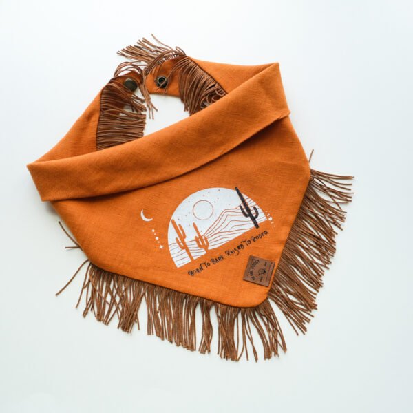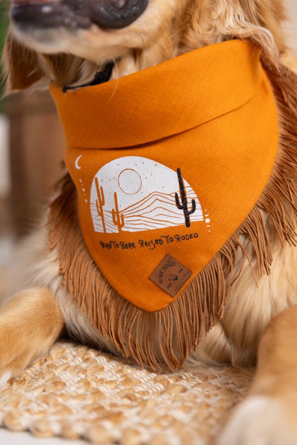 Dog Bandana – Orange Linen with Fringes – Born to Bark, Raised to Rodeo